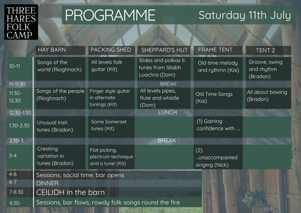 See the programme for Three Hares Folk Camp 2025.